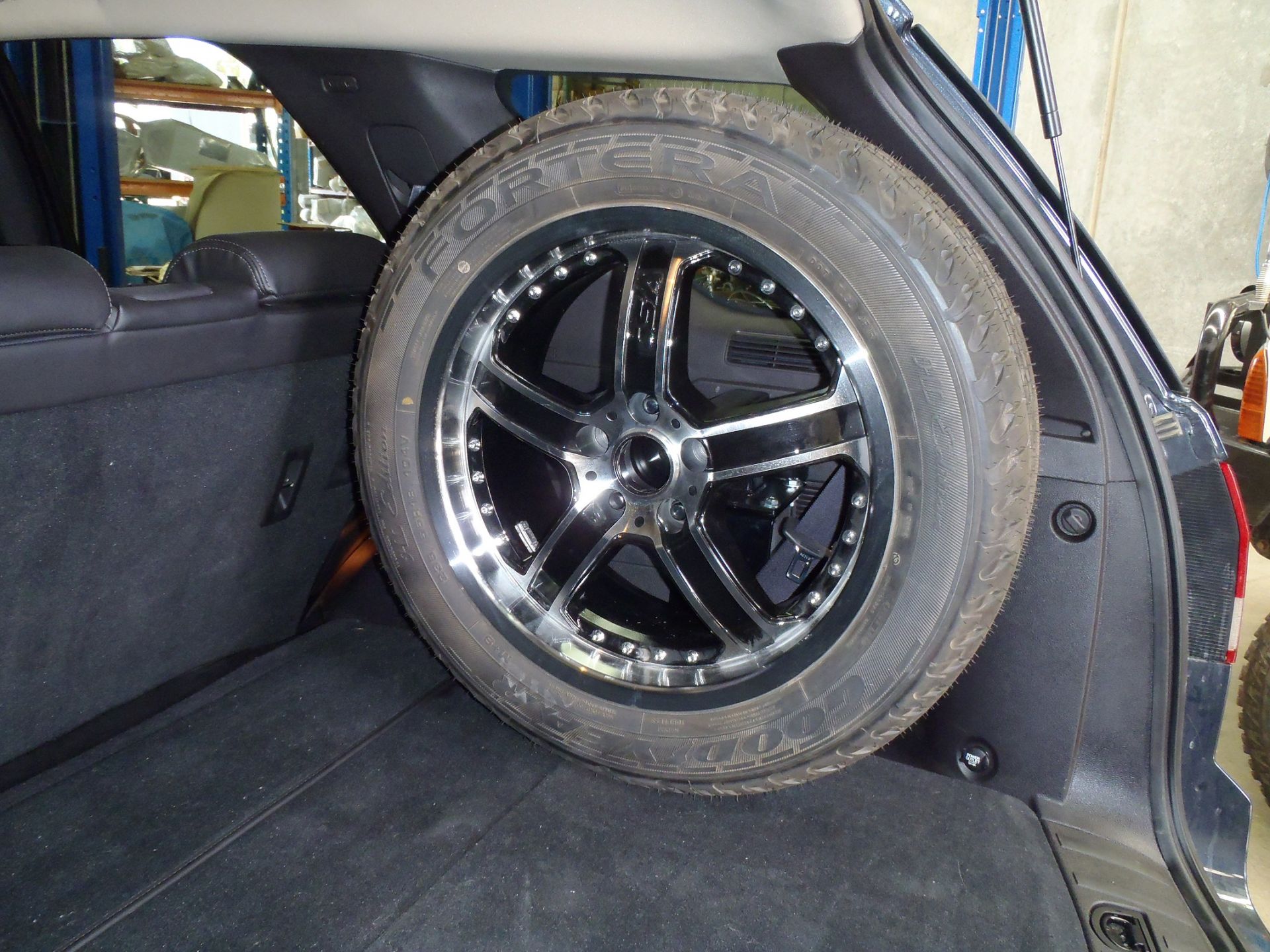 | The install kit includes an internal wheel stand, you must specif the wheel & rim size at the time of ordering. Using the wheel stand, you cannot use the 3rd row seats | |